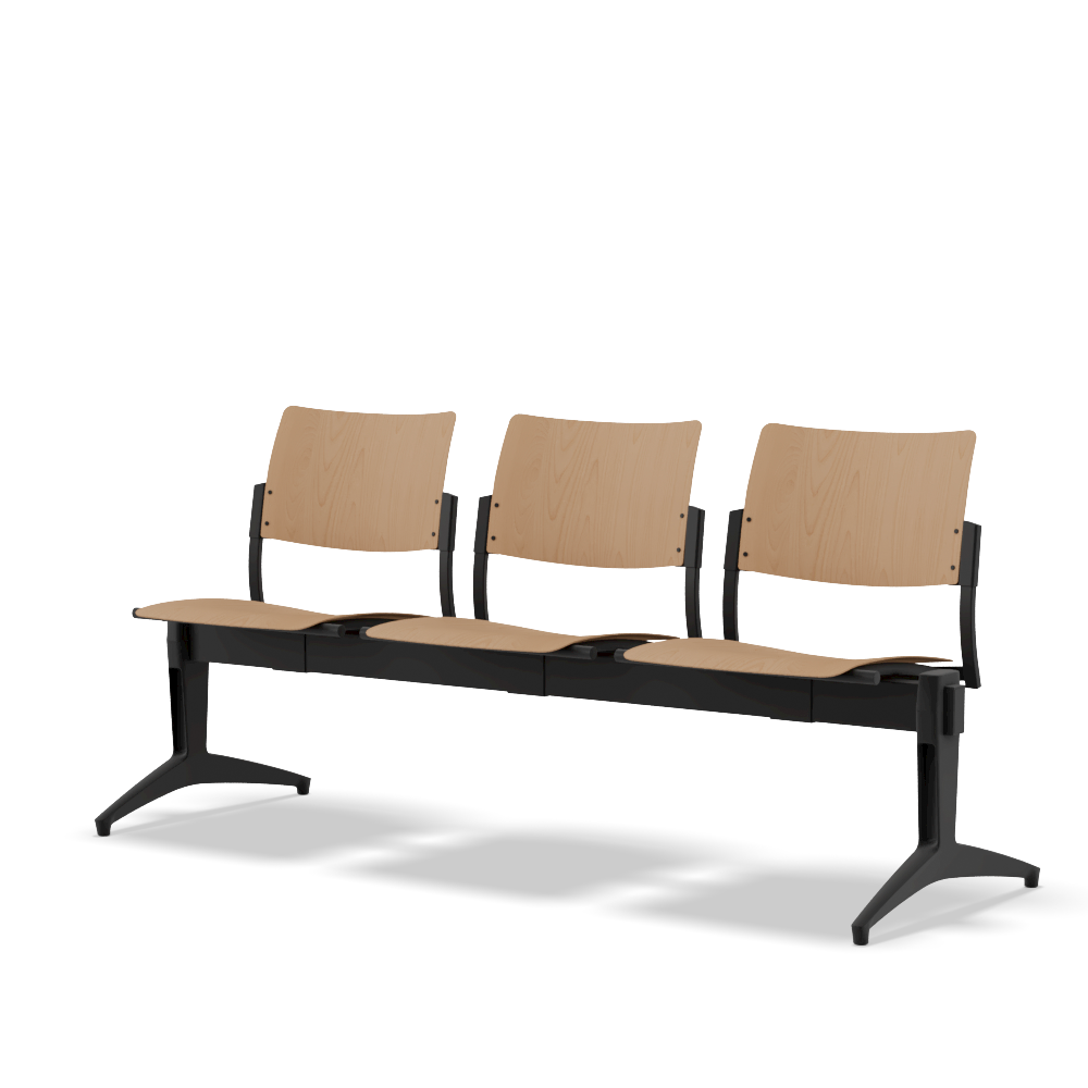A bench featuring a versatile and classic design, Square offers a high degree of customization of the backrest and seat shells. Various material options are available including plastic, fabric, mesh and wood. Plastic shells are offered in black, gray, beige, red blue, and orange, while wooden shells are made of beech. In addition, various accessories such as legs and armrests are available to add additional levels of customization and functionality to the bench.