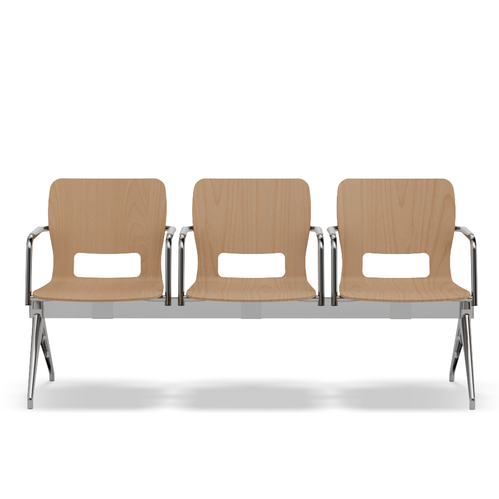 Young is a bench that is ideal for waiting environments, featuring a beechwood monoshell with a minimalist yet distinctive design, emphasized by a generous opening in the backrest. Young's versatility is evident in the wide range of available accessories, including armrests and legs. The beechwood monoshell is offered in a variety of vibrant colors, including bleached, orange, green, light blue, and blue, allowing the bench's appearance to be customized to fit any environment.