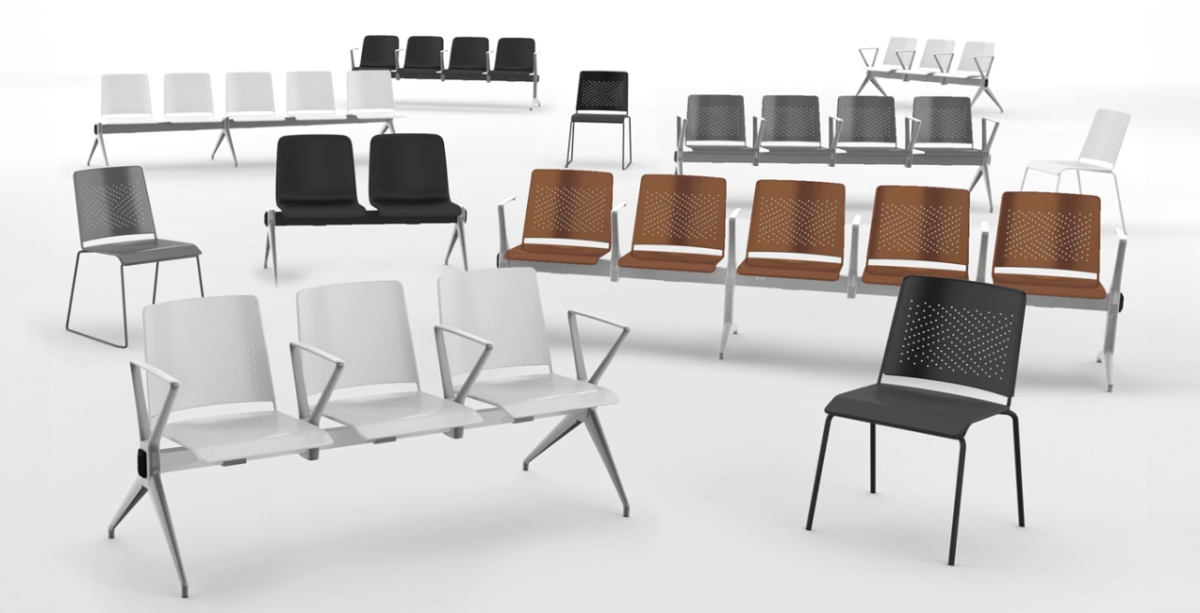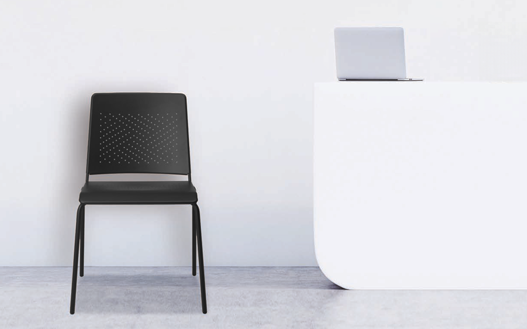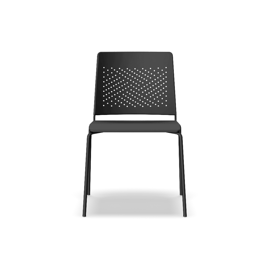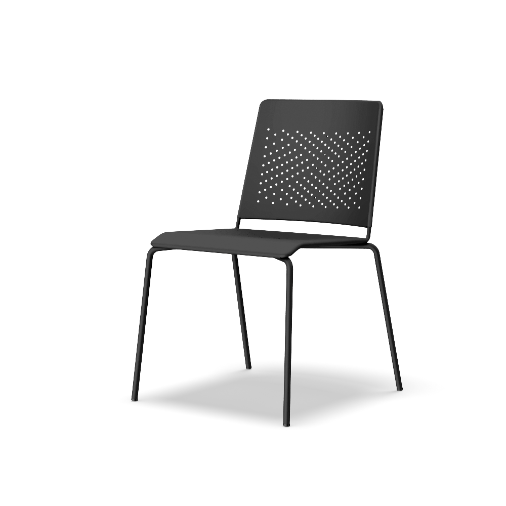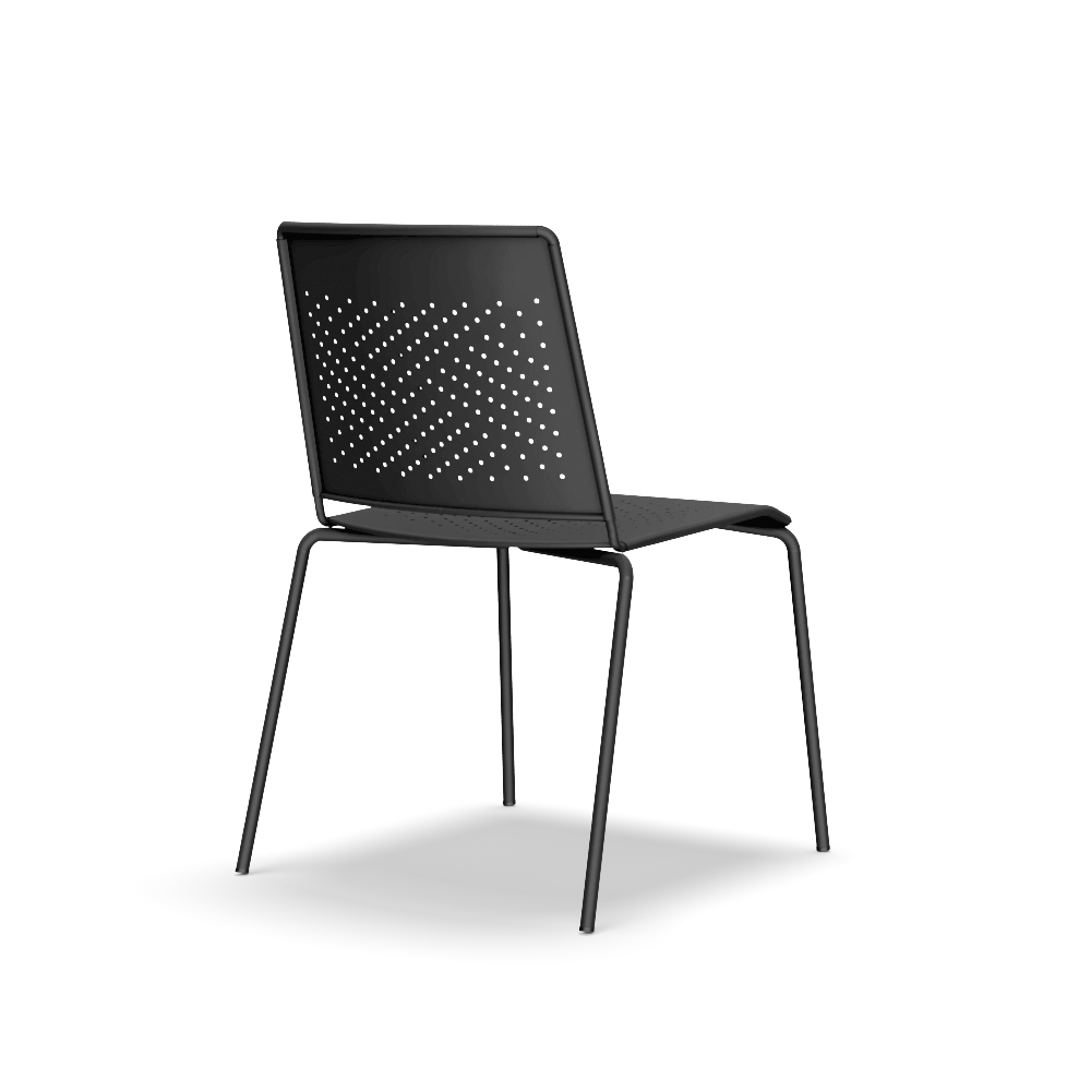 Nexus is a solid and spacious chair made entirely of metal, which does not give up elements of lightness, guaranteed by the special perforated design of the backrest. Shell and 4-leg frame form a single piece, allow for stacking, and are available in white, black, gray, and corten finish.