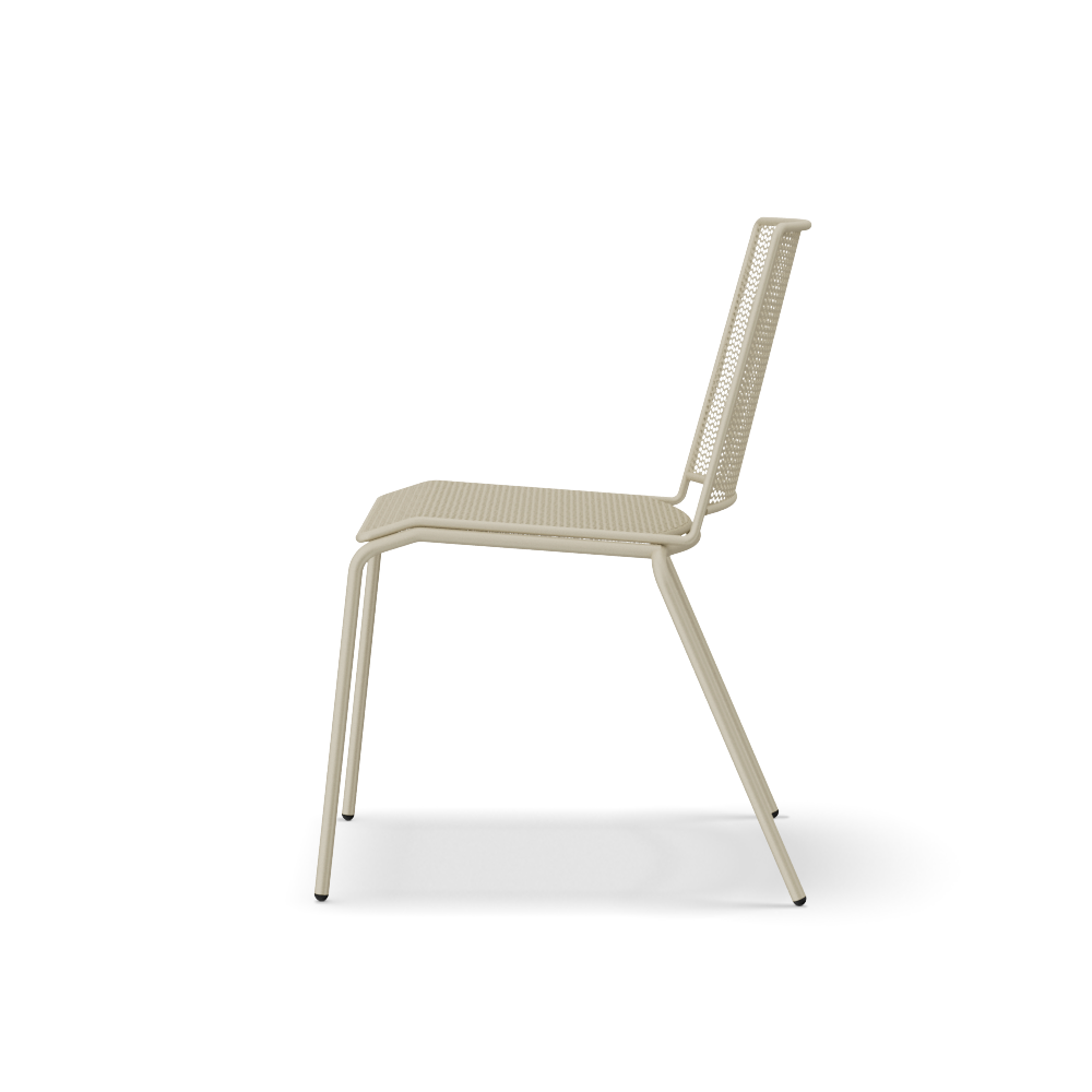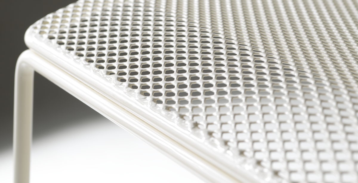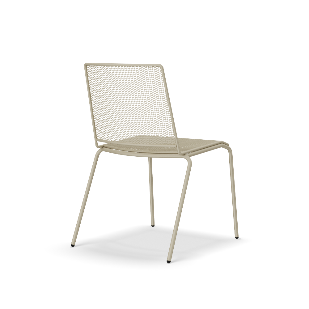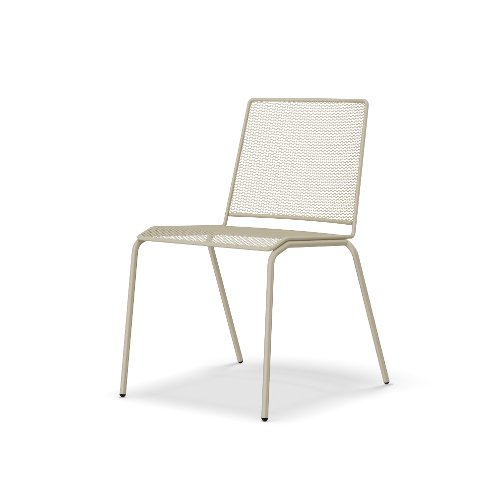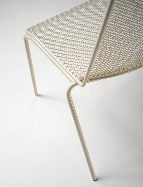 The all-metal seating line from the Tapas collection. The chairs, available with 4-leg or sled frames, are ideal solutions for use in outdoor environments and are a durable and aesthetically pleasing piece of furniture, thanks to the special mesh-effect metalwork of the back and seat. Available colors for Tapas are corten, with the typical shade variations of this finish, and ivory.