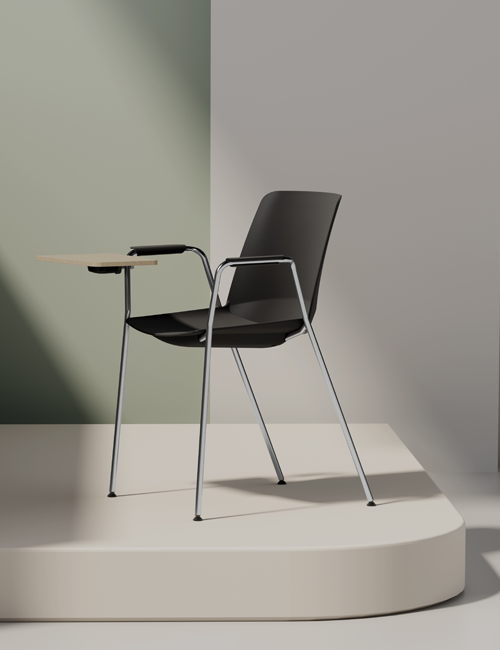 Gemma 4 legs chair with armrests and tablet with plastic monoshell