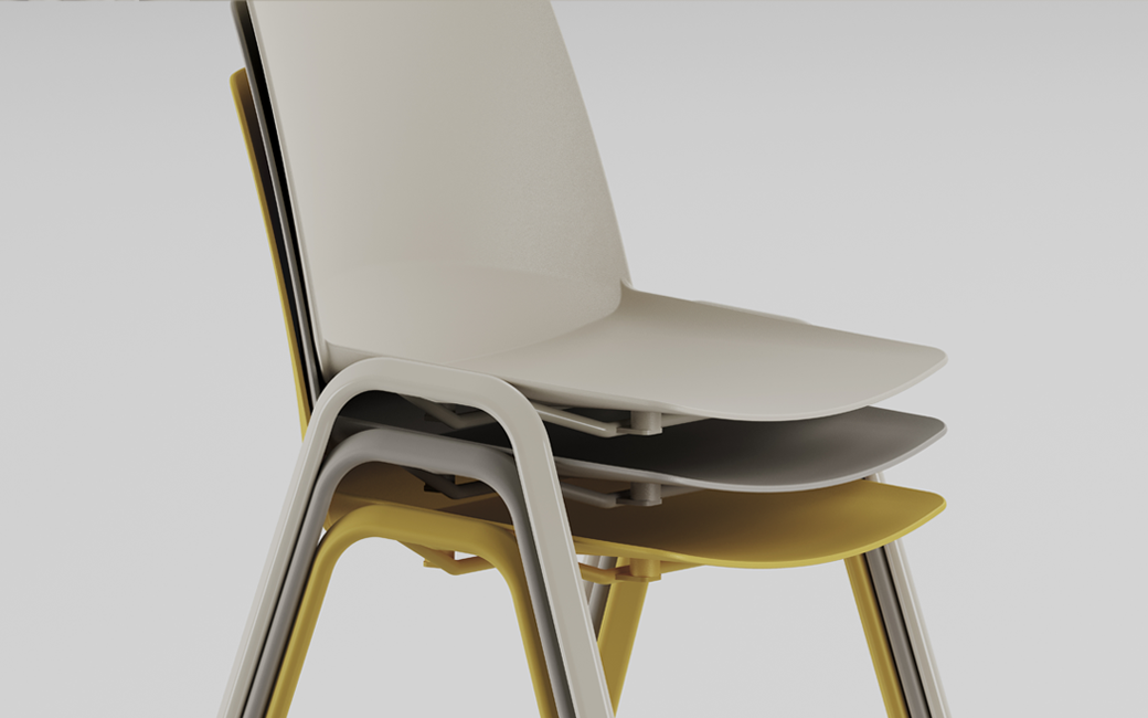 A version of the Gemma seat dedicated to maximizing stacking capabilities. In fact, the special 4-leg Conference frame allows for stable vertical stacking, ensuring optimal and effective space management. The monoshell, characterized by an aesthetic solution that makes the seat and the backrest perceived as separate elements, is available in black, ivory, gray, yellow, red and green. The frame also reproposes the same colors, with the addition of a chrome finish.