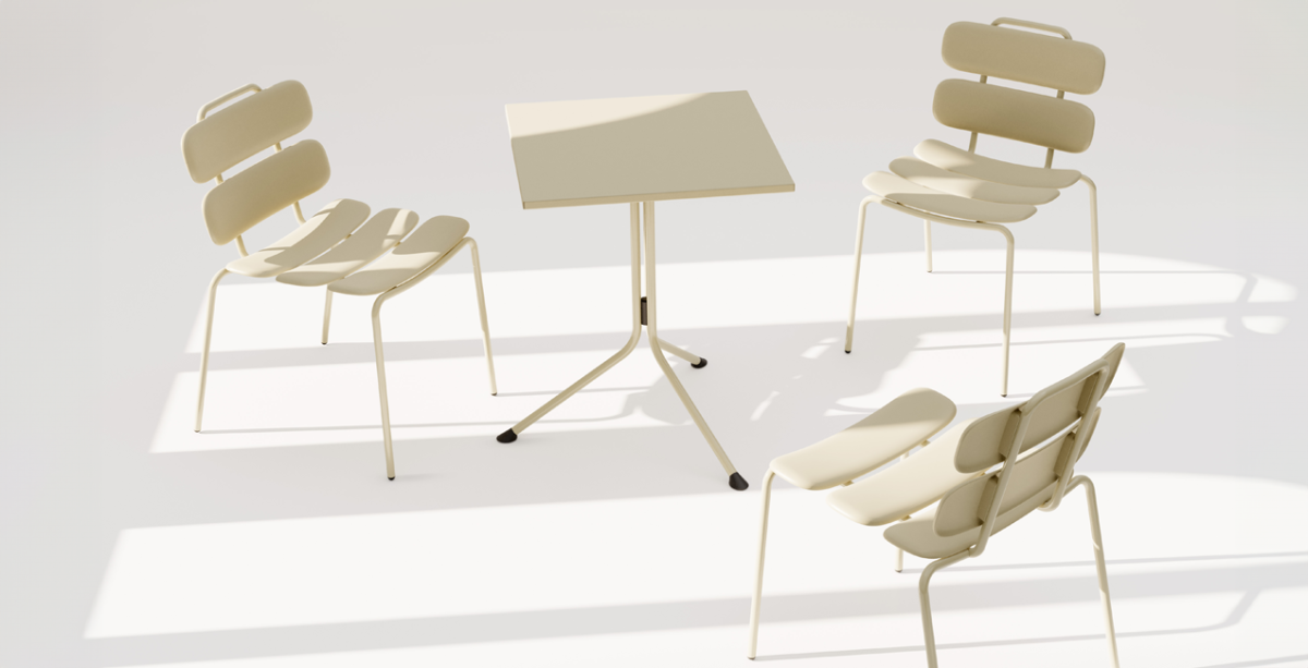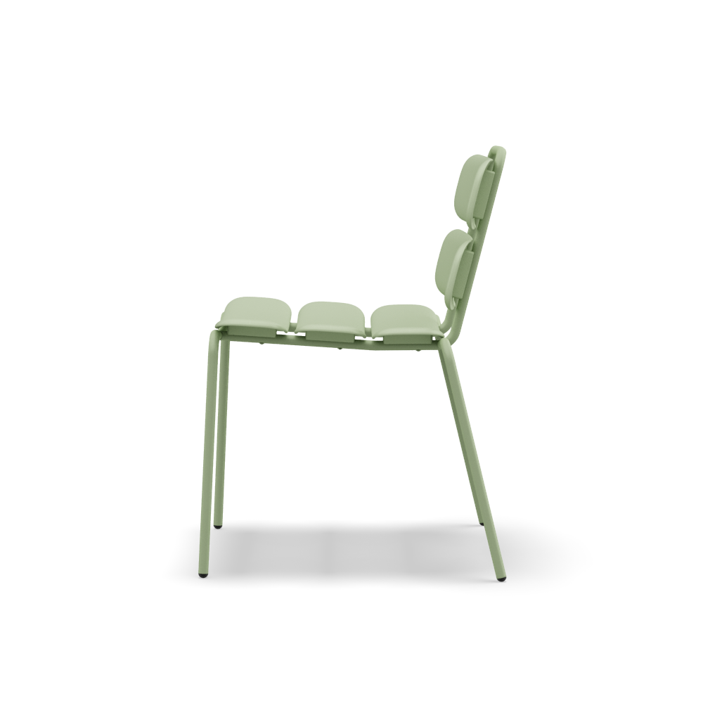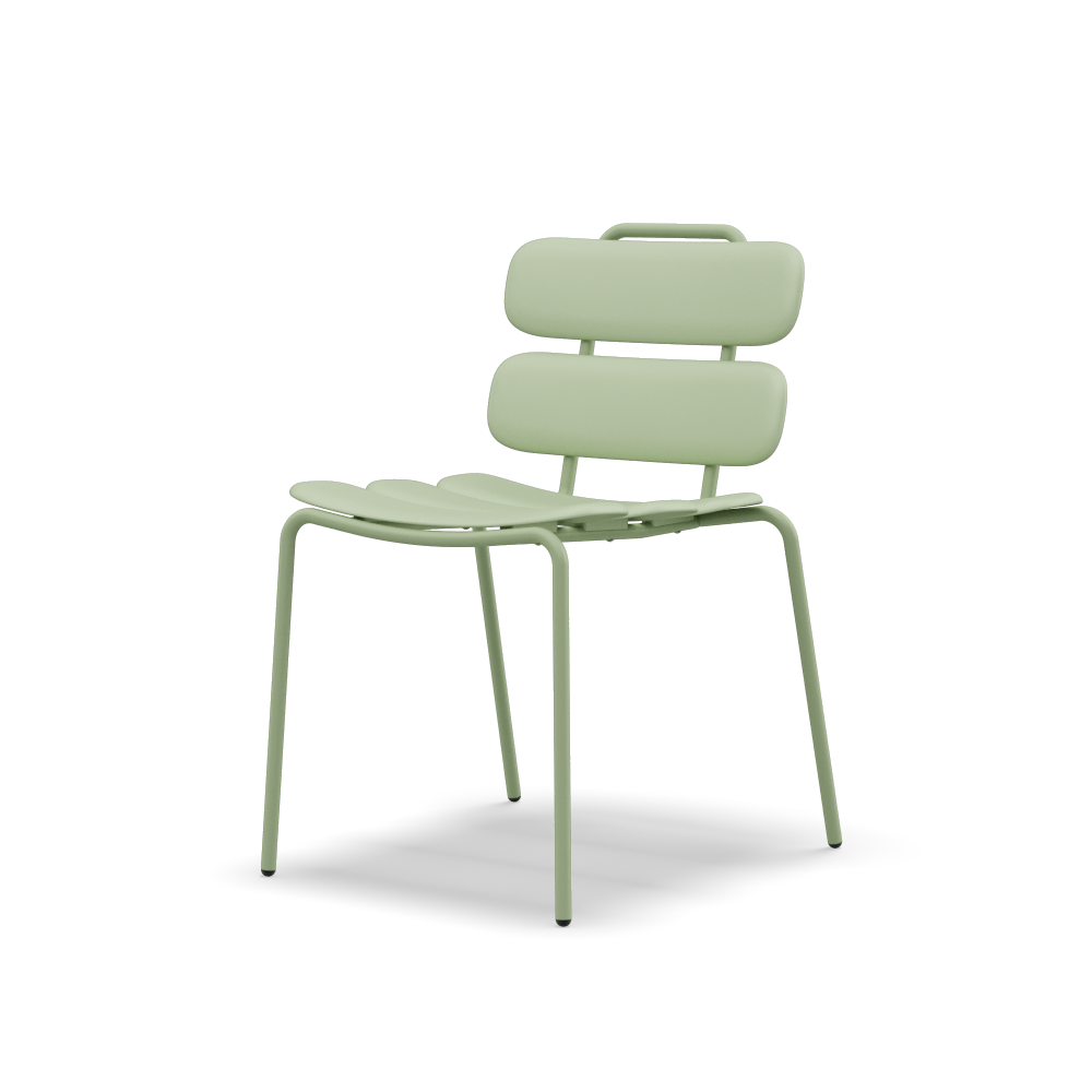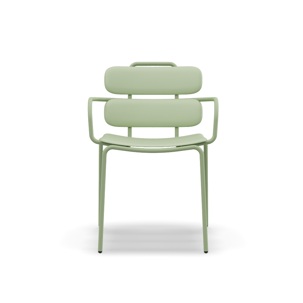 The Lemon chair is ideal for outdoor use. Its distinctive technopolymer staved design makes it a distinctive and practical piece of furniture that is also suitable for indoor settings. The frame has no visible screws and is available in either a version with armrests or without, both of which are stackable. Lemon is offered in a curated selection of 6 colors: black, ivory, gray, yellow, red, and green.
