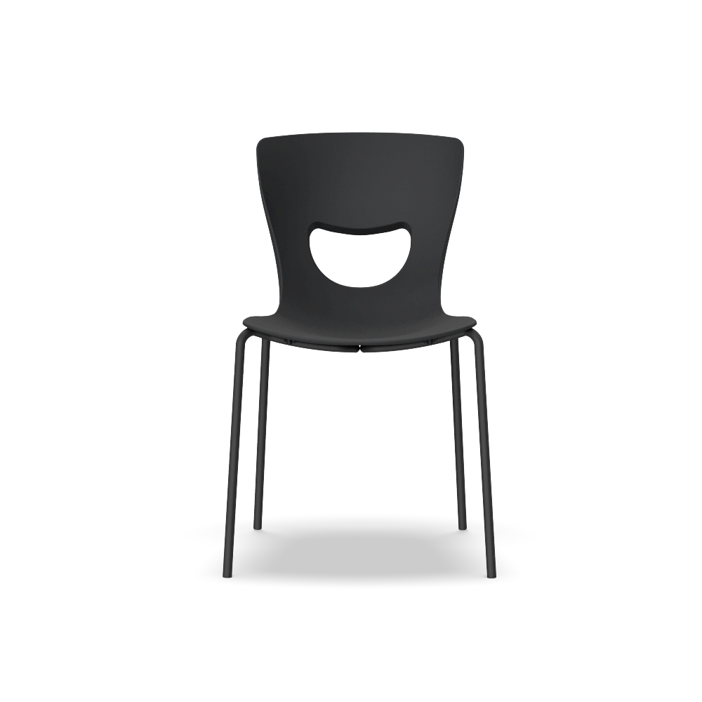 A plastic monoshell chair with a distinctive hole in the backrest. Pluto is proposed as a good solution for contract and living spaces, thanks to its practical sled frame and the evergreen 4-leg frame. The monoshell, also suitable for outdoor use, is available in a selection of 6 trendy shades: ivory, gray, yellow, brown, red, and blue, and is completed with a convenient upholsterable panel that can be easily installed on the seat.