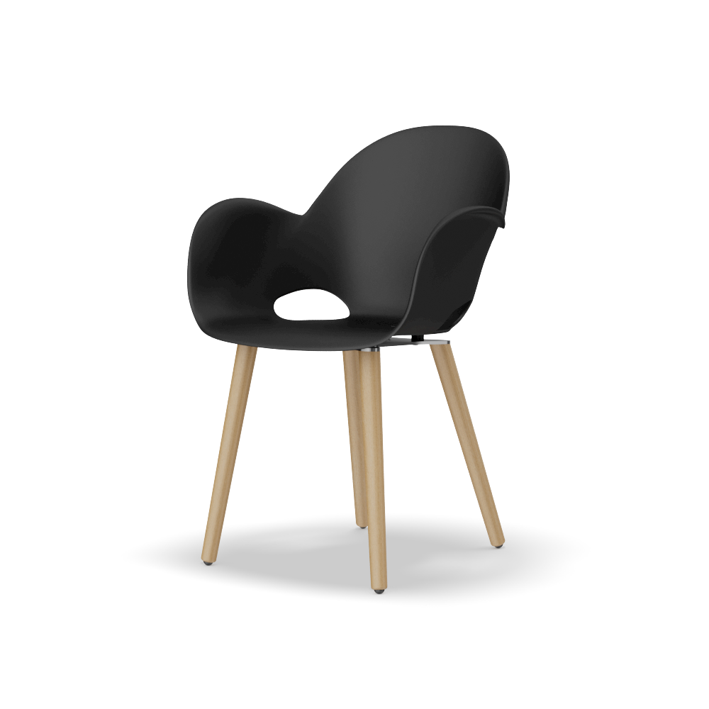 Wing is a plastic monoshell chair characterized by a design with welcoming and soft shapes, the result of a spontaneous fusion of curved lines. Versatile and distinguished by a wide choice of frames, Wing finds its place in both living and professional settings, and is suitable for commercial contexts such as food courts, food courts, restaurants and cafes. The monoshell, available in black, ivory, blue, coral and mud, is combined with 4-leg, sled, cantilever, swivel, swivel trestle and 4-leg beech frames. A convenient upholsterable panel for installation on the seat is offered to complete the offering.