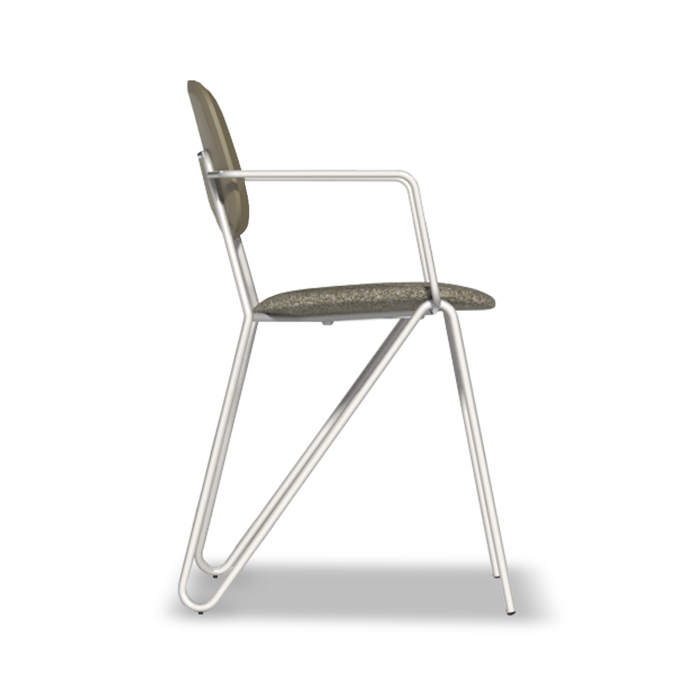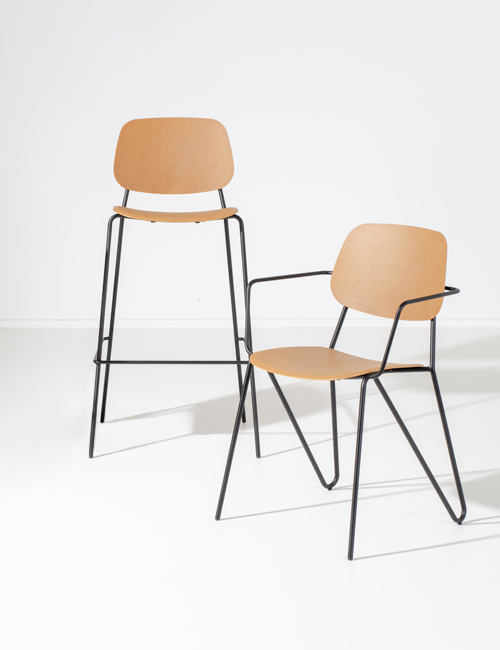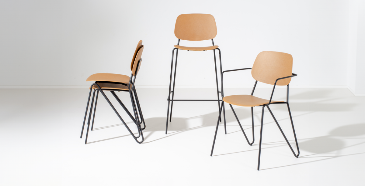 The curvatures of Jota's frame tell of our metalworking know-how: a single movement that defines the curves and linear development of the metal tube, making the structure solid, in a single sign. The result is a seat with compact lines that is stackable and can be fitted with armrests. The frame is offered in white, black and chrome finish, The technopolymer backrest and seat shells are available in 4 colors: black, gray, green, red. In the Bio-husk version, backrest and seat are offered in natural finish only. Backrest and seat can also be upholstered.