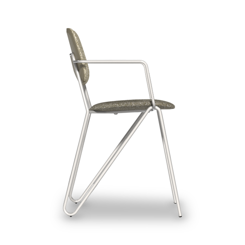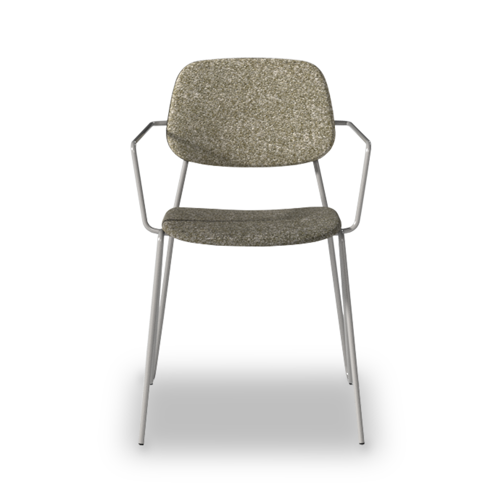 The curvatures of Jota's frame tell of our metalworking know-how: a single movement that defines the curves and linear development of the metal tube, making the structure solid, in a single sign. The result is a seat with compact lines that is stackable and can be fitted with armrests. The frame is offered in white, black and chrome finish, The technopolymer backrest and seat shells are available in 4 colors: black, gray, green, red. In the Bio-husk version, backrest and seat are offered in natural finish only. Backrest and seat can also be upholstered.