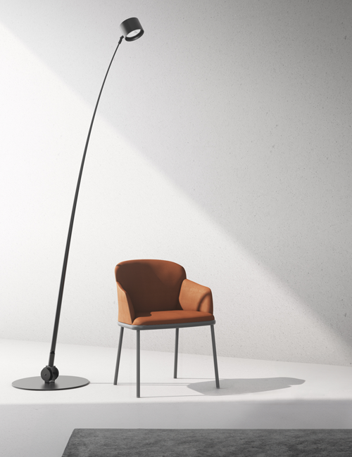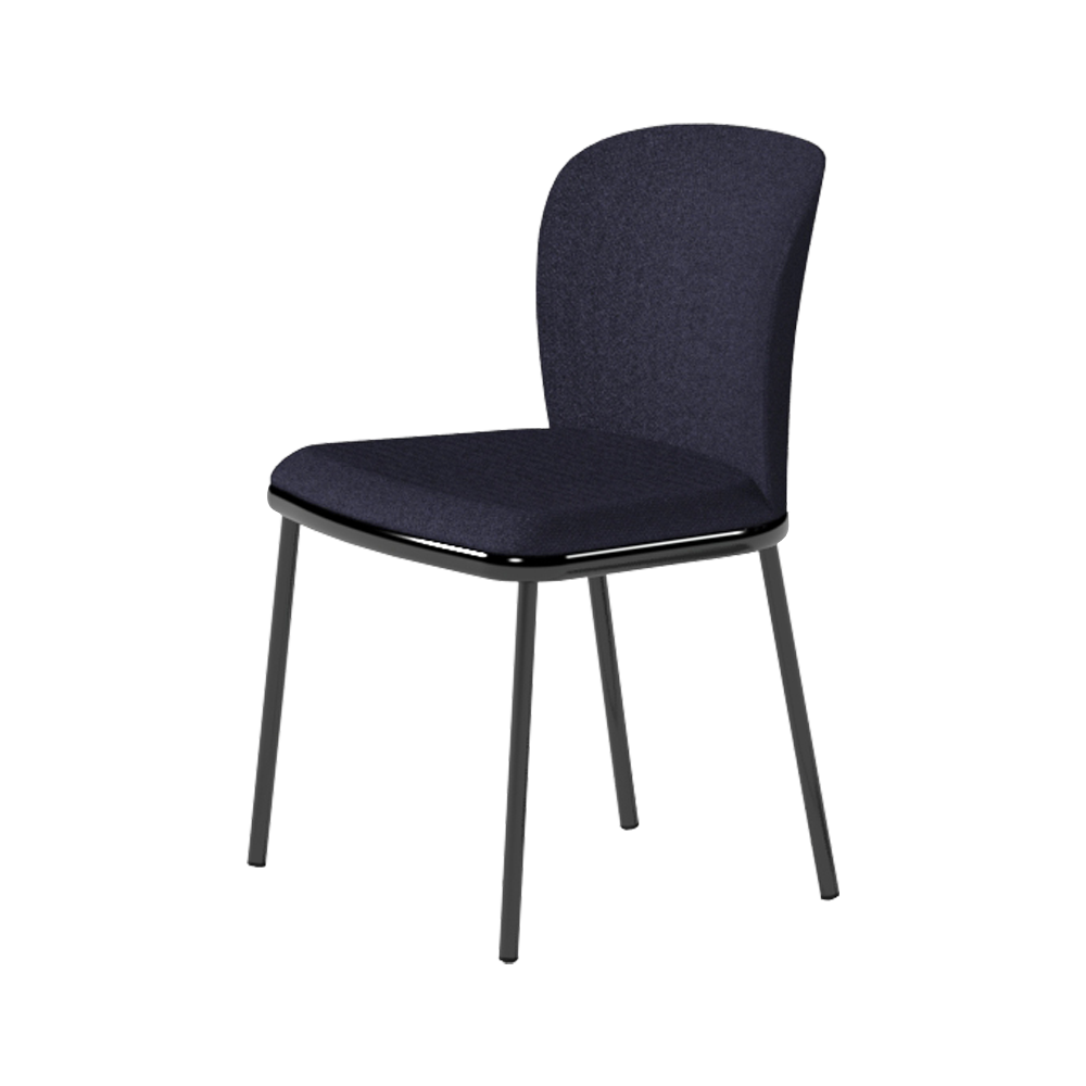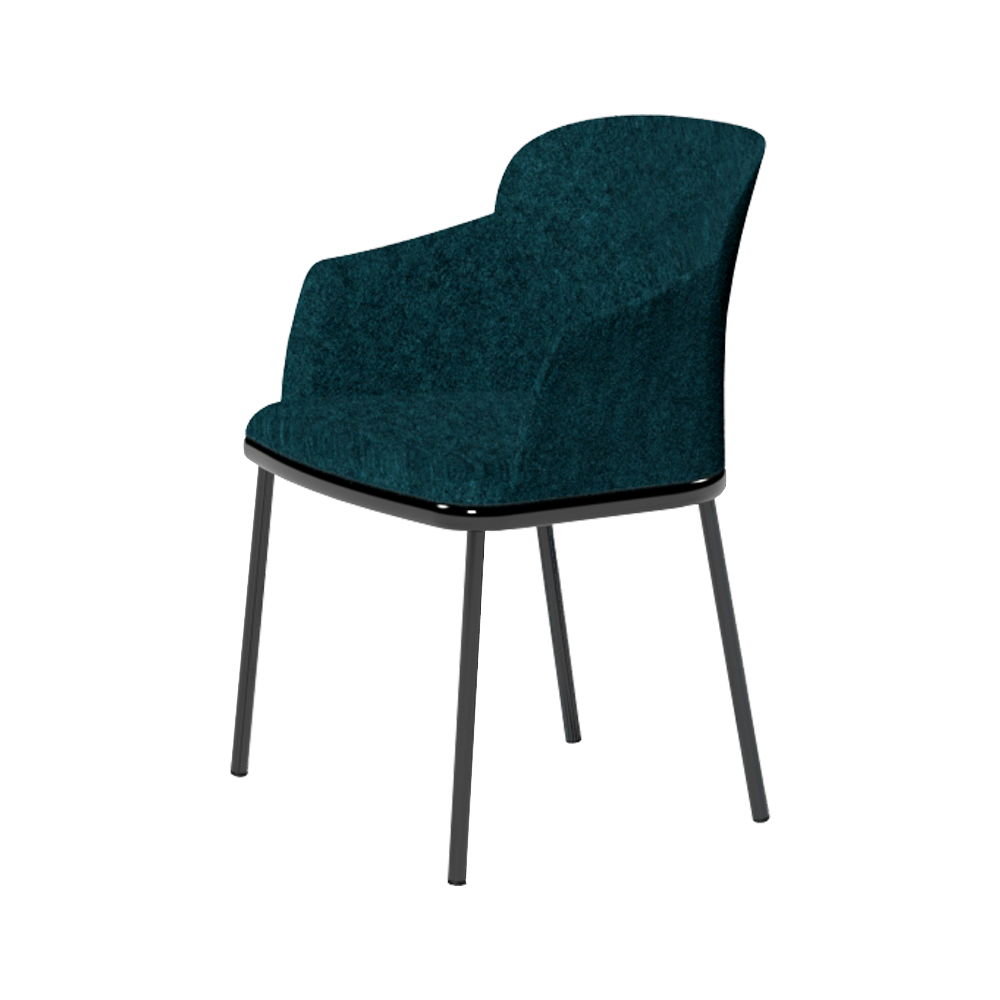 Meti is an armchair with and without arms, with a metal frame and polyurethane foam shell to be upholstered in fabric. The backrest is enveloping, comfortable and welcoming, and gives a distinctive horizontal, flat line to the design of the seat. Many characterization possibilities given by the combination of fabrics and metal finishes, available in black, white, and a chrome finish.