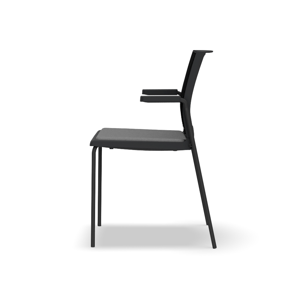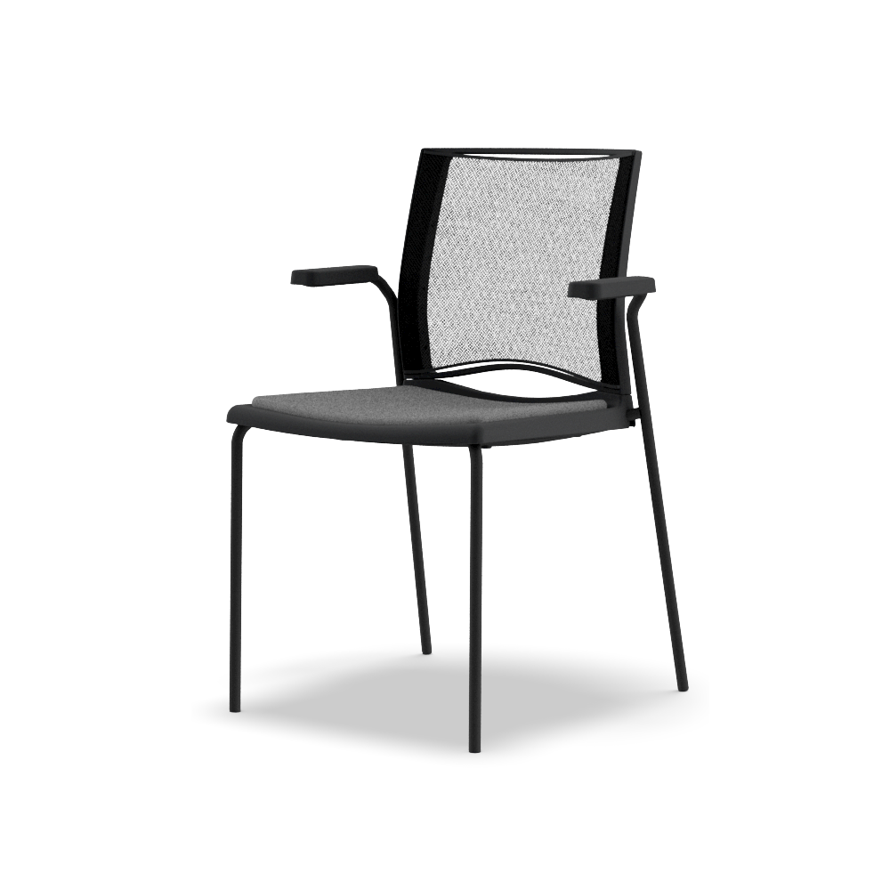 X3 4 legs chair with armrests with upholsterable seat and mesh backrest