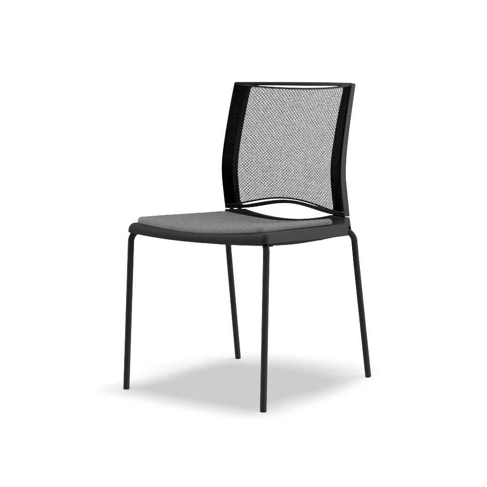 X3 4 legs chair with upholsterable seat and mesh backrest