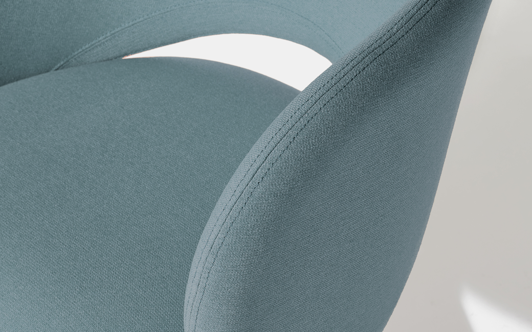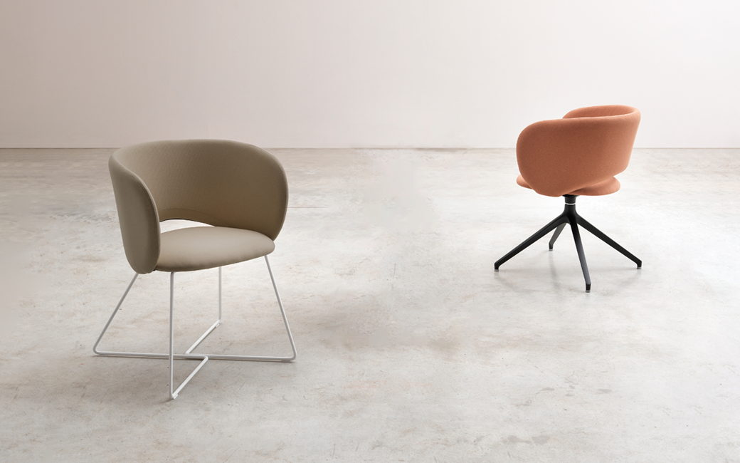 In the Dining version, Maui is a versatile upholsterable armchair, suitable for restaurant and living areas, but also ideal for completing the décor of a hotel room. Maui is available with a sled frame in white, black, or chrome, or with an allunimium swivel base in black or polished finishes.