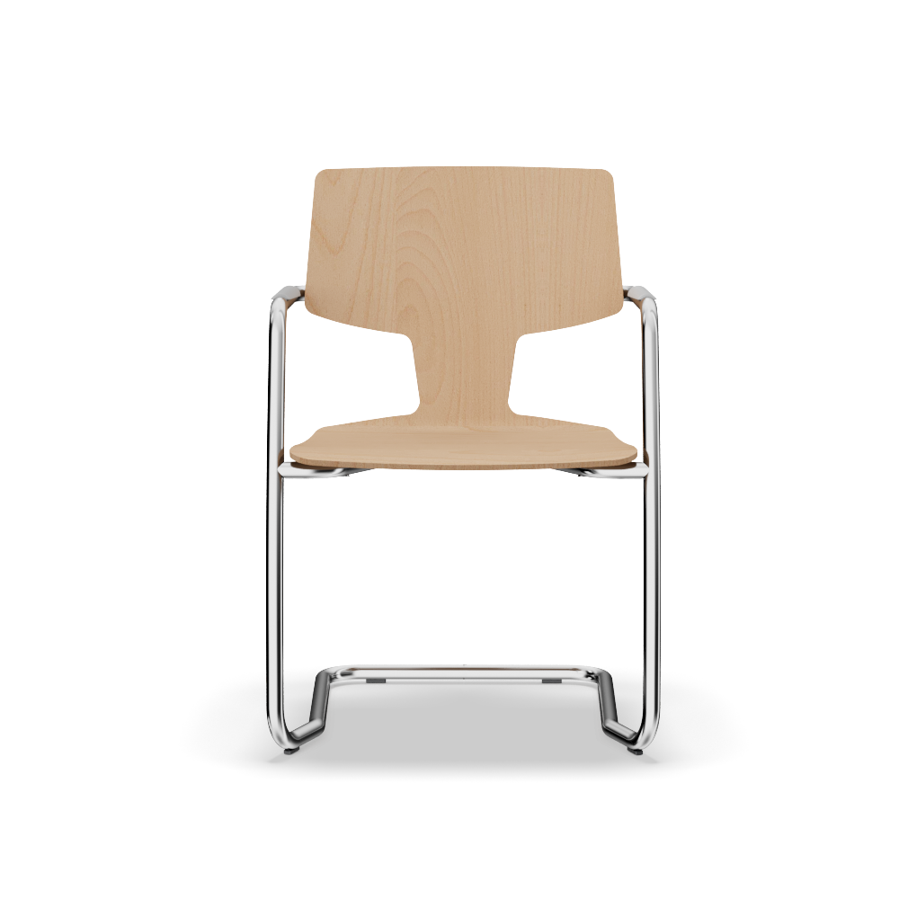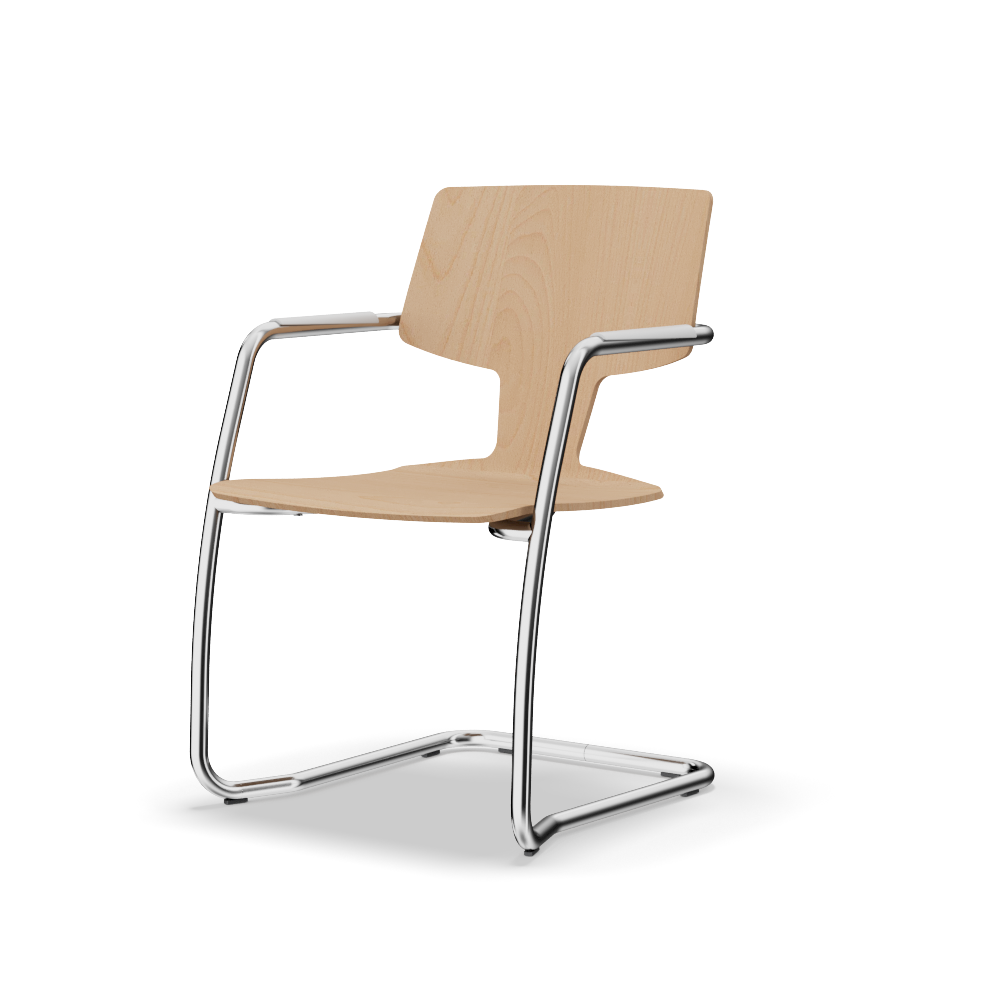 The distinctive shaped lines of the wooden monoshell make Key a chair with a dynamic and fresh design. Matchable with 4-leg and cantilever frames, and swivel bases, the beech monoshell is available in 5 colors: bleached, orange, green, light blue and blue. The frames, on the other hand, are offered in black and gray, and in a chrome finish.