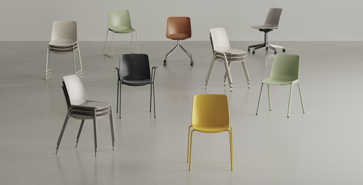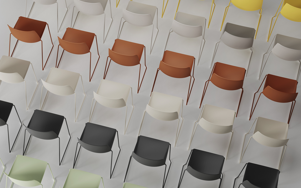 Gemma's technopolymer monoshell chairs are offered in combination with a wide range of frames: 4-legs with and without armrests, sled, swivel and trestle on castors, giving the seats great dynamism in any context of use. The monoshell, characterized by an aesthetic solution that makes the seat and the backrest perceived as separate elements, are available in black, ivory, gray, yellow, red and green. The frames also repropose the same colors, with the addition of a chrome finish. Several accessories are available, including an upholsterable seat panel, and a provision for installing a seat board.