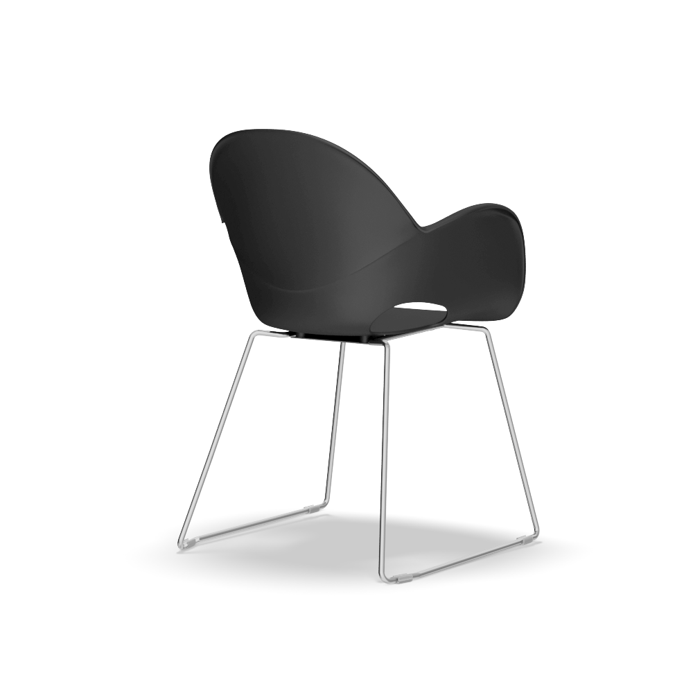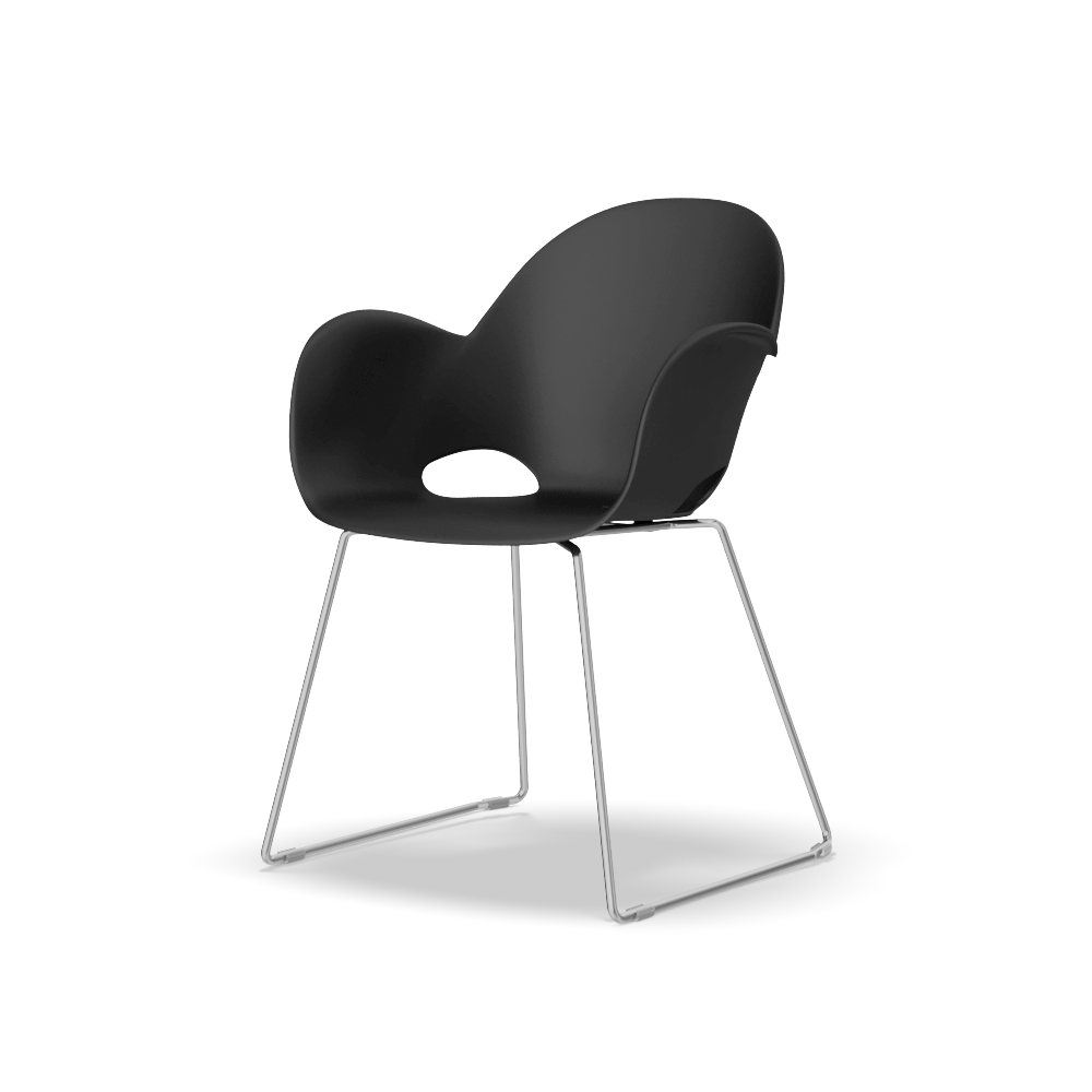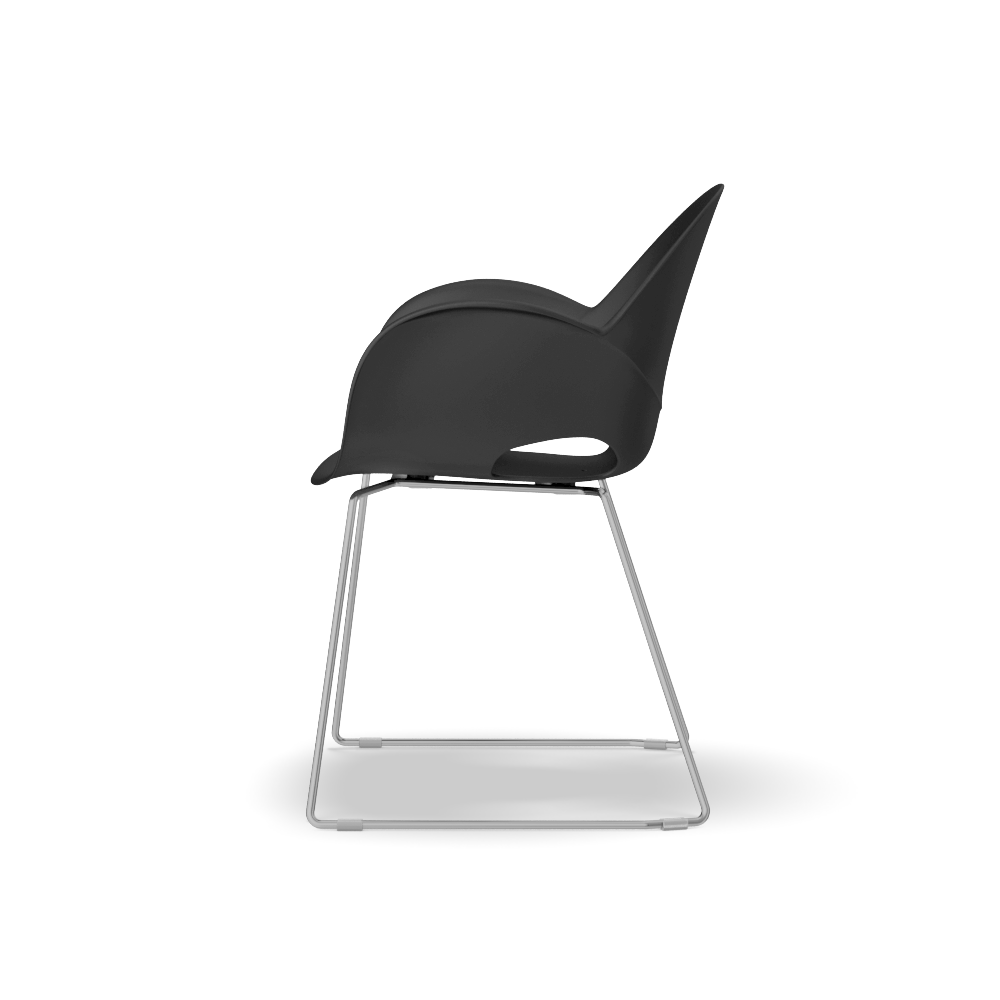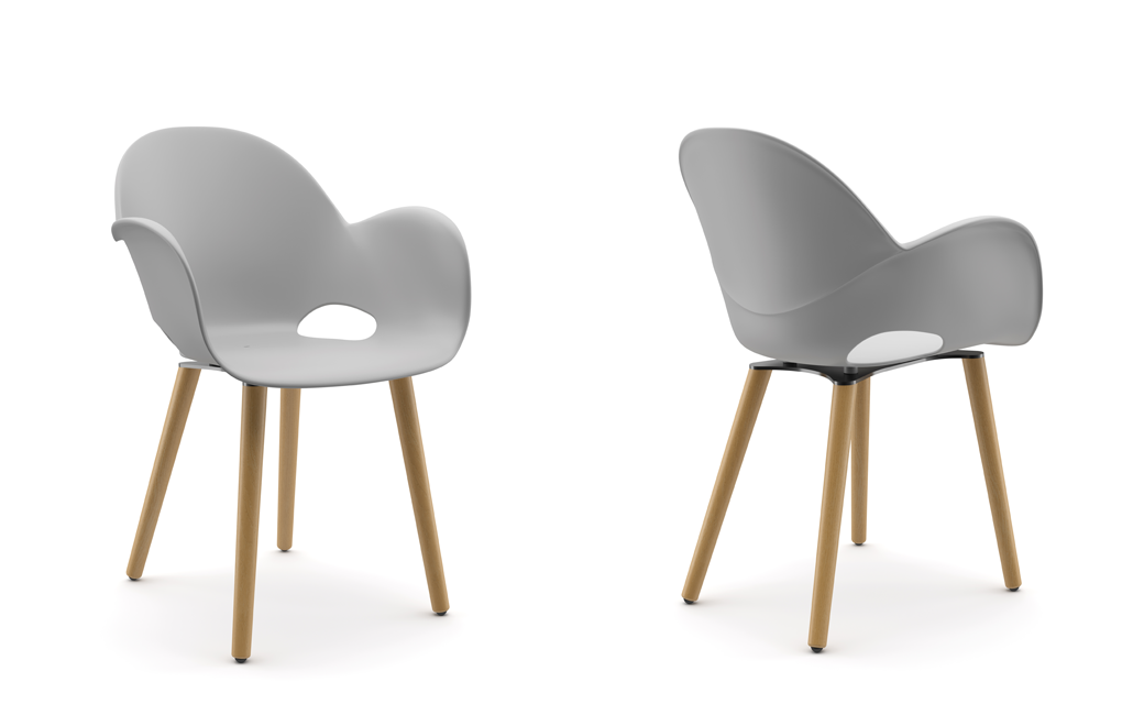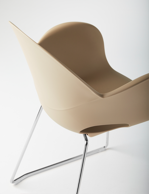 Wing is a plastic monoshell chair characterized by a design with welcoming and soft shapes, the result of a spontaneous fusion of curved lines. Versatile and distinguished by a wide choice of frames, Wing finds its place in both living and professional settings, and is suitable for commercial contexts such as food courts, food courts, restaurants and cafes. The monoshell, available in black, ivory, blue, coral and mud, is combined with 4-leg, sled, cantilever, swivel, swivel trestle and 4-leg beech frames. A convenient upholsterable panel for installation on the seat is offered to complete the offering.a