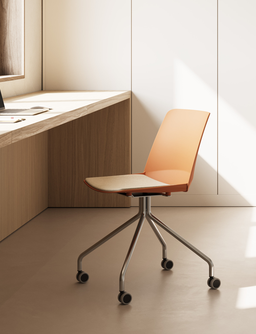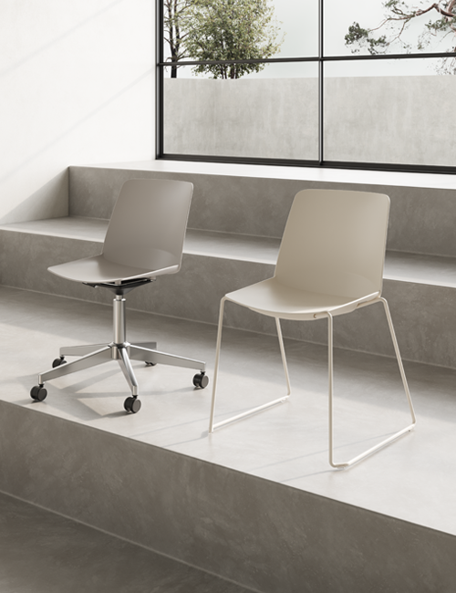 Gemma's technopolymer monoshell chairs are offered in combination with a wide range of frames: 4-legs with and without armrests, sled, swivel and trestle on castors, giving the seats great dynamism in any context of use. The monoshell, characterized by an aesthetic solution that makes the seat and the backrest perceived as separate elements, are available in black, ivory, gray, yellow, red and green. The frames also repropose the same colors, with the addition of a chrome finish. Several accessories are available, including an upholsterable seat panel, and a provision for installing a seat board.
