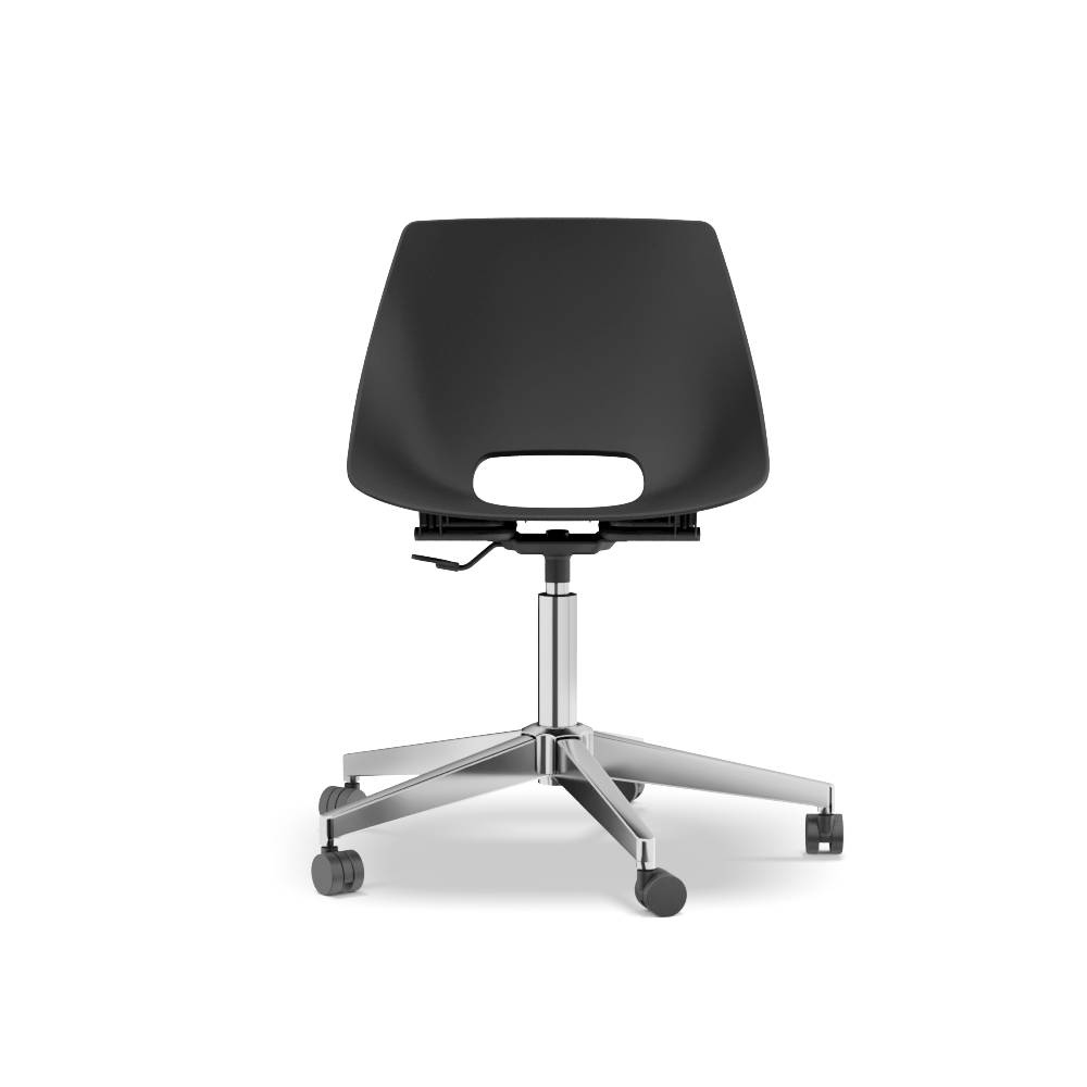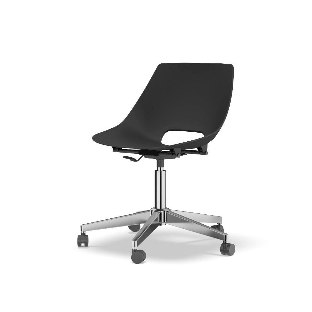 A versatile chair with a distinctive aesthetic. Oki can count on an essential range of frames, including 4-leg and swivel, offered in black, gray and chrome finishes, and a plastic monocoshell available in 3 classic colors. Accessories, such as practical side joining hooks, complete the lineup.