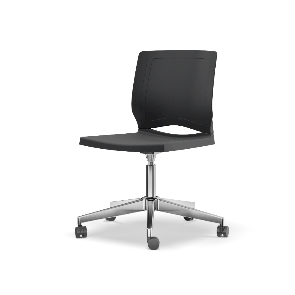 X3 is a practical and versatile chair, thanks to a highly configurable backrest that allows a choice of multiple finishes and materials - from exposed plastic to perforated plastic, from fabric to mesh -and that pairs perfectly with an equally customizable seat. All can rely on a full selection of frames: 4-leg, sled and swivel, available in black, gray and chrome finishes. Plastic seat and backrest shells, on the other hand, are offered in white, black, gray and red.