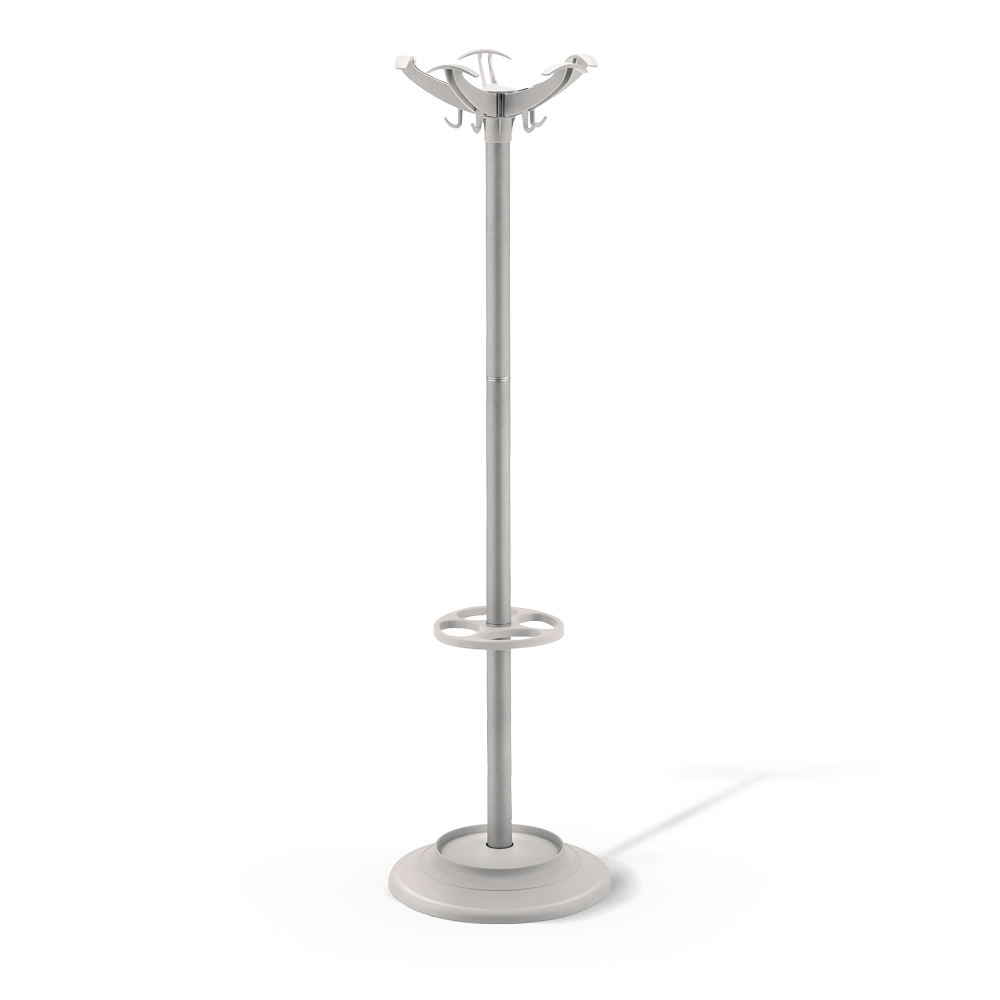 The Elix coat hanger offers an elegant and functional solution for space organization. The metal column structure is available in white, black, gray, and chrome finishes, while plastic components such as the practical umbrella stand are offered in black and gray.