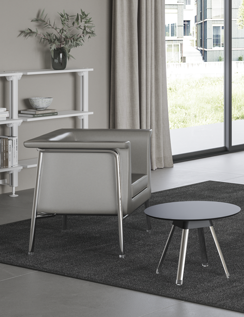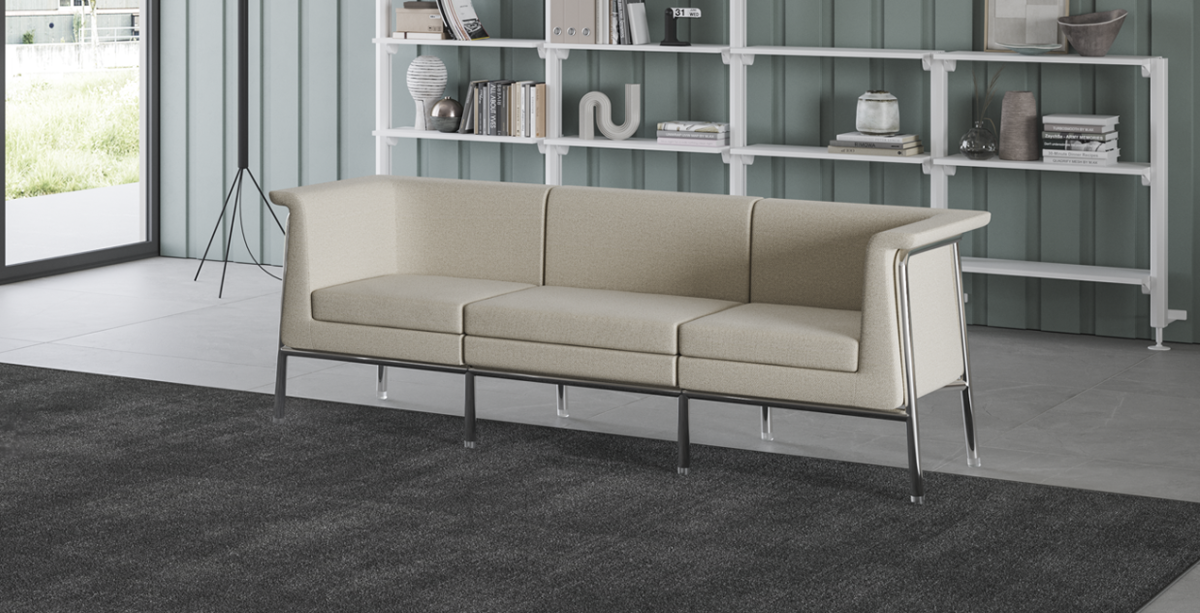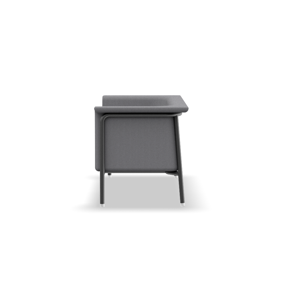 In this stand-alone version, Unyo constitutes a timeless piece of furniture: the two-seater sofa. The structural part consists of a pre-assembled frame, to which two polyurethane corner modules to be upholstered are attached. The frame is available in four colors: classic black, chrome and white, and an elegant beige. The frame finishes are matched with durable transparent feet made of polycarbonate.