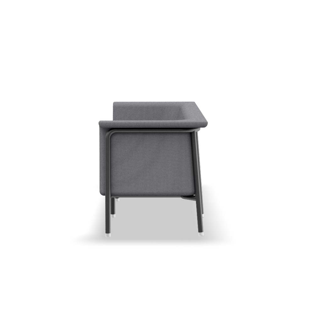 The modular version of the Unyo sofa offers multiple solutions to the most diverse types of needs, thanks to the innovative system that allows 11 special modular metal frames to be assembled together. This is made possible by special joints, developed directly by Alba R&D, allowing the various components to be joined together in a versatile and simple way. To the frames, 6 polyurethane modules are combined to be upholstered, and which can have, on request, comfortable shaped cushions. The frames are available in 4 colors: classic black, chrome and white, and an elegant beige. Sturdy transparent feet made of polycarbonate complete the offer.