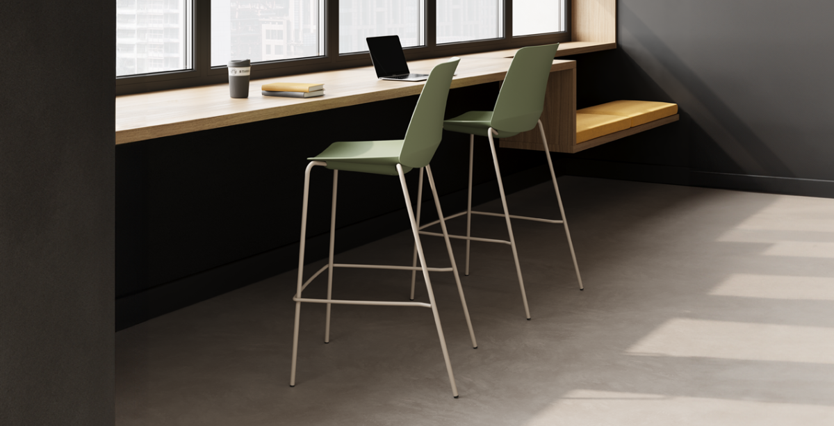 The Gemma stool offers a wide and comfortable seat, combining a technopolymer monoshell characterized by clean, bold lines with a classic 4-leg frame with integrated footrest. Shell and frame are available in a curated selection of contemporary and natural colors, including yellow, red, green and ivory.