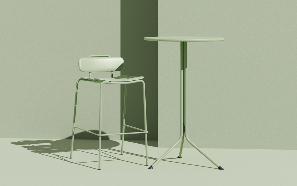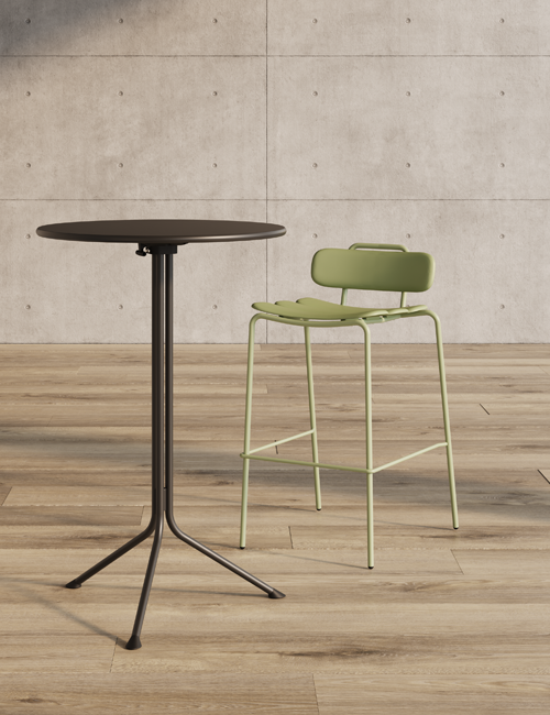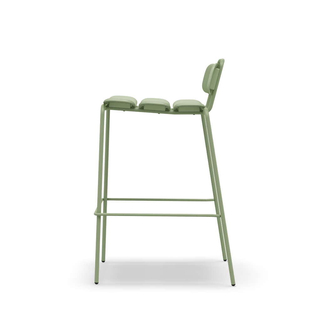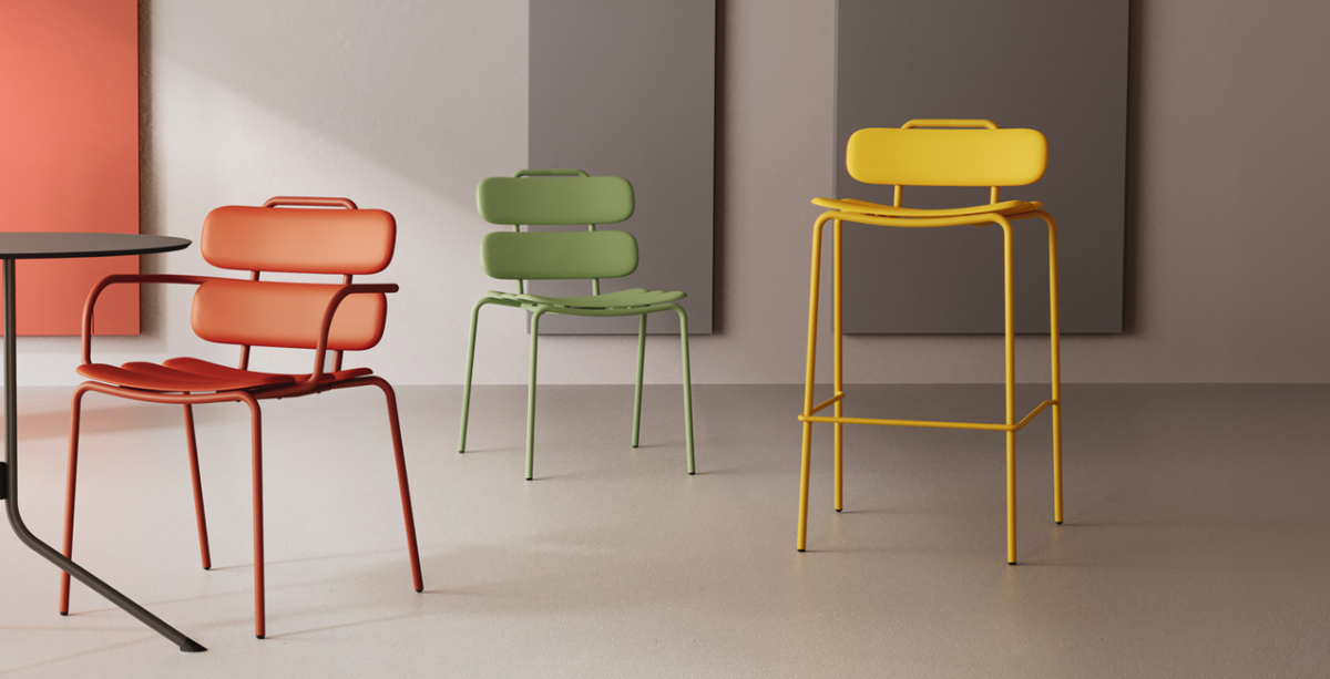 The Lemon stool combines a classic four-leg frame with integrated footrest with a distinctive shell consisting of 3 individual technopolymer staves. The frames are available in two different heights, and are ideal for pairing with the high tables of the collection. The Genesi stool is offered in a curated selection of 6 colors: black, ivory, gray, yellow, red, and green.