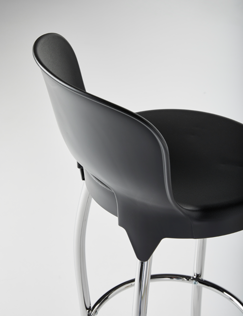 Paco is a stool with a modern style but with elements of classic design appeal, such as its distinctive curved 4-leg frame. The plastic monoshell is available in anthracite, beige and blue, matching the gray and chrome finishes of the frame.