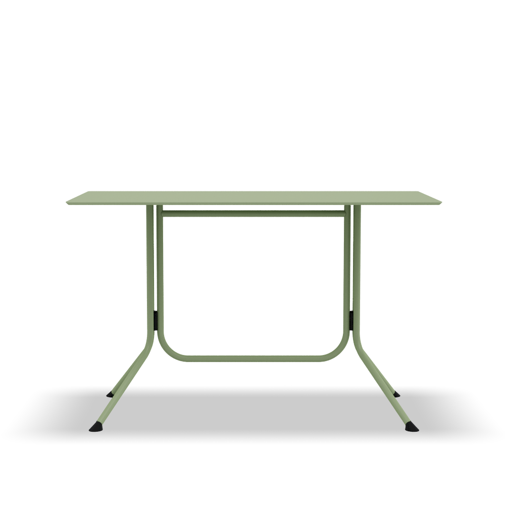 The rectangular format of the Lemon table echoes the collection's characteristic leg concept, to which it adds an additional structural element. The medium version is ideal for pairing with chairs from the Lemon collection, and is available with metal or HPL tops in 6 different colors, suitable for both outdoor and indoor use.