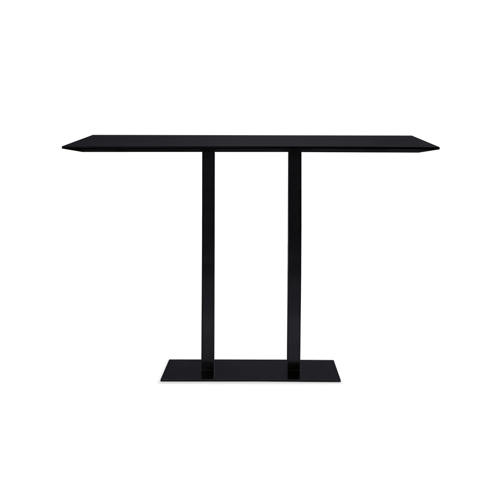 The tall rectangular-format version of the Riace table is available with a rectangular base and double square column in white, black and gray, which can be combined with rectangular-format HPL tabletops in black or ivory finish. The versatile design and practicality of the center column structure make this version perfect for completing the décor of pubs, bars and cafeterias.