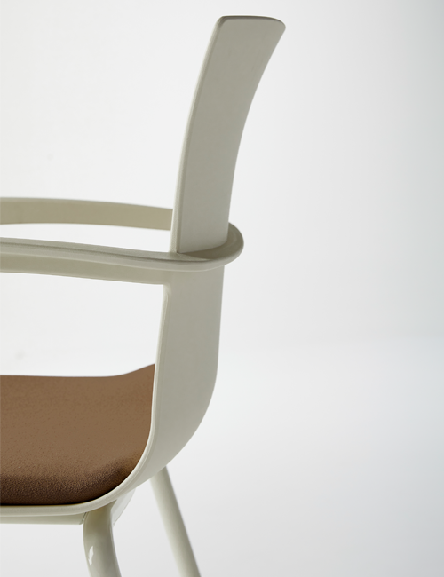 Manila offre la sensazione di un sicuro abbraccio grazie ai suoi avvolgenti braccioli che si integrano dinamicamente nello schienale dell’ampia e comoda monoscocca in plastica. I colori della monoscocca, disponibili in 6 tonalità di tendenza, trovano il perfetto abbinamento con le finiture proposte per le 3 varianti di telaio disponibili.