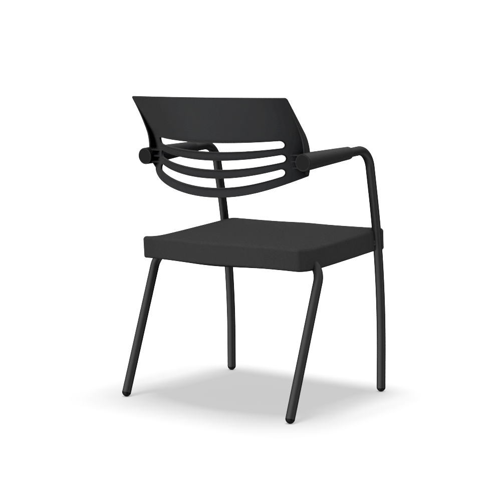 Moon offre massima comodità, grazie all’ampio sedile imbottito, e stabilità grazie allo schienale portante in plastica, bianca o nera, che può essere a vista o configurato con un pannello aggiuntivo da tappezzare. La centralità dello schienale si ritrova anche nel suo rapporto, perfettamente integrato, con i telai disponibili per la collezione: 4 gambe e cantilever.