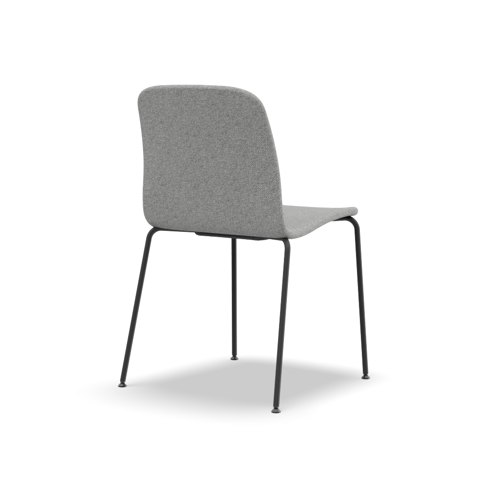 Una monoscocca in legno di faggio o rovere poggiata su una larga varietà di telai in metallo, dal classico 4 gambe, con o senza braccioli, al pratico telaio a slitta, fino alla versatile base a trespolo fissa su ruote. La cura del dettaglio della collezione passa dalla lavorazione della monoscocca in legno, anche tappezzabile, alle eleganti e funzionali cover sottoscocca in tecnopolimero, fino ai piedini orientabili disponibili per il telaio a 4 gambe. I telai sono proposti nelle finiture nera, avorio e cromata, mentre la cover sottoscocca è disponibile in nero o avorio.