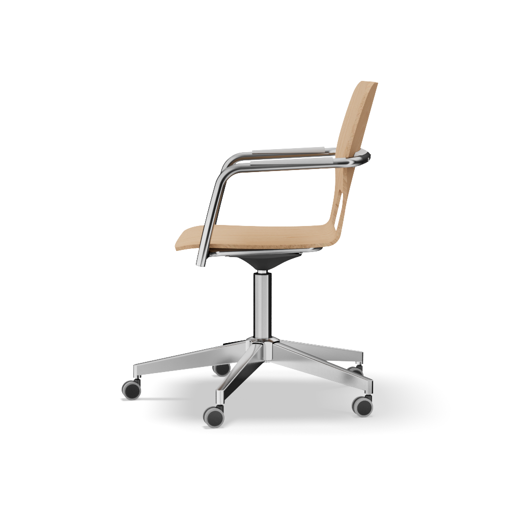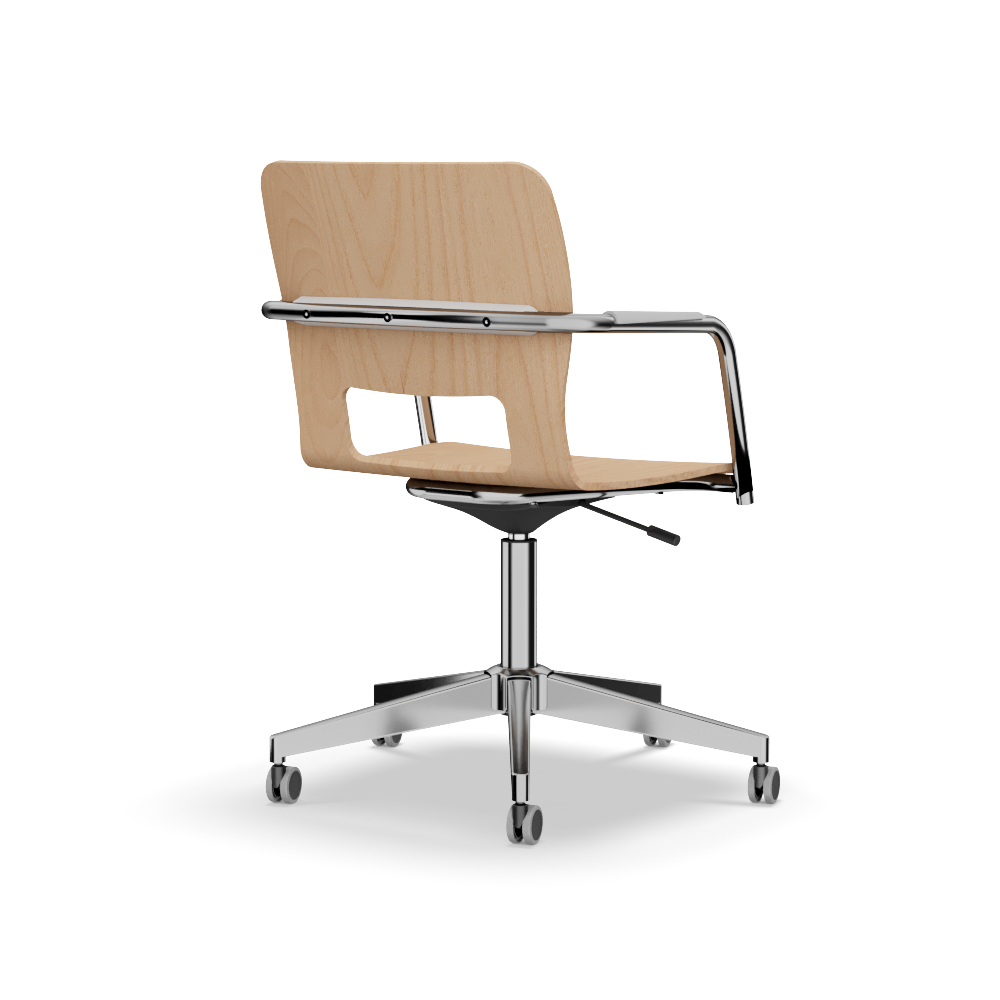 Young è una sedia con monoscocca in legno dal design classico ma distintivo, evidenziato dal foro presente sullo schienale. È disponibile in cinque colori: sbiancato, arancio, verde, azzurro, blu e con la possibilità di abbinarsi a telai cantilever, a quattro gambe, a quattro gambe con ruote e girevole, nelle finiture nera, grigia e cromata.