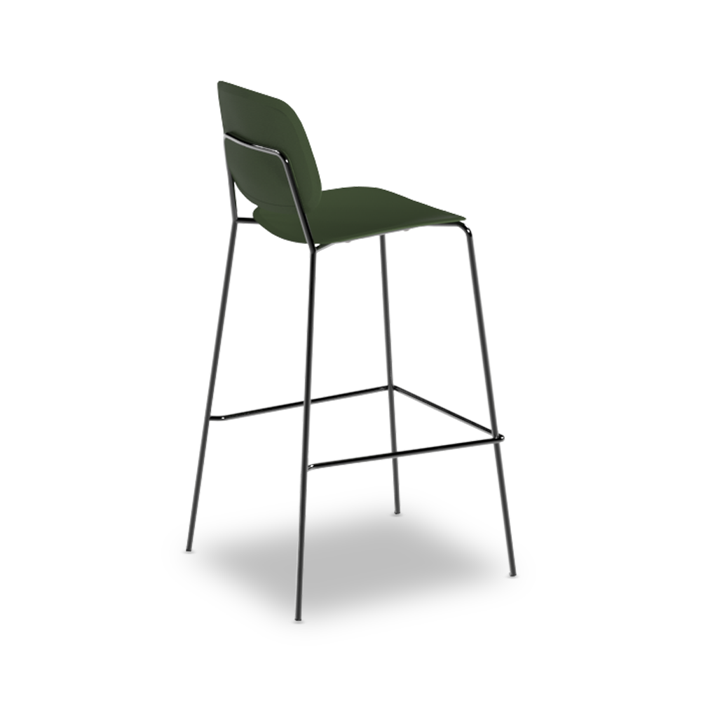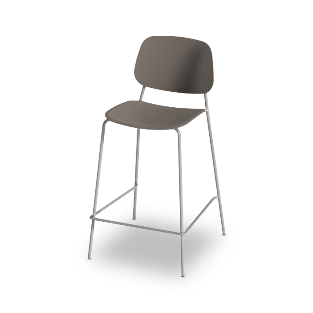La versione sgabello di Jota completa le proposte della collezione. Le scocche dello schienale e del sedile trovano posto su un classico ed elegante telaio a quattro gambe con poggia-piedi integrato, disponibile in due altezze e in 3 colorazioni. Le scocche di schienale e sedile, disponibili in 4 colori e nella finitura naturale del materiale in bio-lolla, possono essere tappezzate con qualsiasi tessuto.