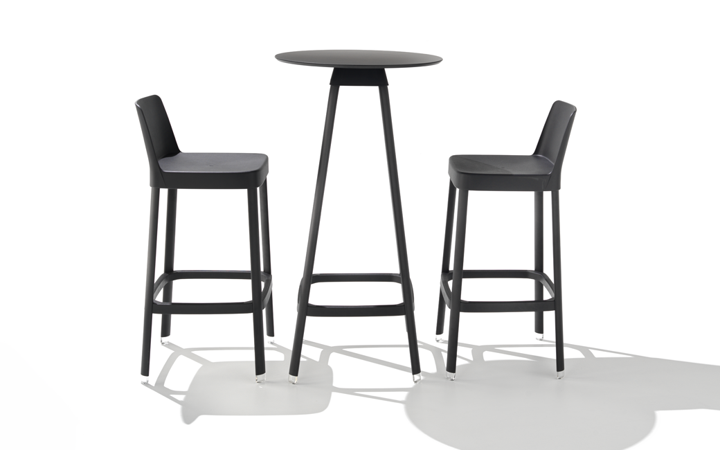 Uno sgabello con gambe in metallo e seduta in plastica, adatto sia ad un utilizzo indoor, che outdoor. Tapas è una soluzione altamente versatile per arredare ambienti Ho.Re.Ca. ma anche domestici, grazie alla sua facile procedura di assemblaggio e alla selezione di tonalità neutre, sia per le gambe in metallo, sia per la seduta e il poggiapiedi in plastica. A completare le possibilità di personalizzazione sono presenti dei piedini in policarbonato con finitura nera o trasparente.
