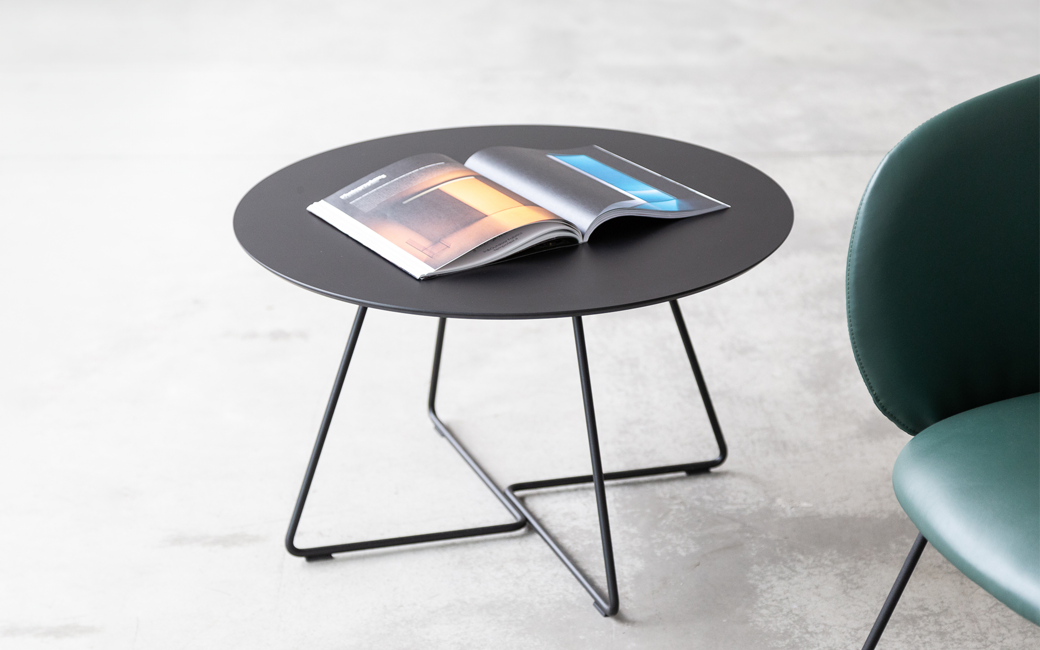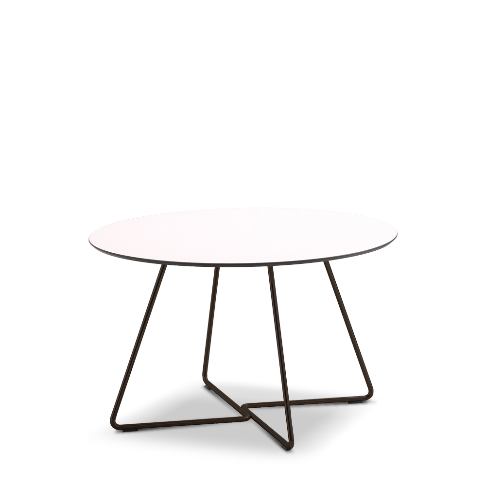 Un versatile ed elegante tavolino con piano in HPL tondo valorizzato da un particolare struttura in tondino metallico curvato. Il tavolo Maui è ideale per completare ambienti lounge, ed è uno spontaneo abbinamento alle sedute della collezione Maui. La struttura è disponibile nei colori nero, bianco, grigio, e nella finitura cromata.